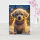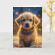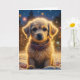Chien chiot mignon dehors sur une carte de Noël personnalisée et enneigée nuit.