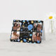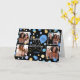 Créez une carte de voeux photo collage élégant! Personnalisez le modèle avec quatre photos préférées, le nom du récipiendaire et l'âge d'anniversaire. Un design amusant avec des confettis ronds, des ballons et "Joyeux anniversaire" dans un script branché. Parfait pour la famille, les enfants, les amis et les animaux ! Couleurs imprimées : bleu, noir, blanc et or.