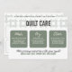Une courtepointe est un travail d'amour, et devient souvent un héritier de famille. Lorsque vous offrez une courtepointe, utilisez cette carte pour aider le destinataire à apprendre à prendre soin de sa nouvelle courtepointe précieuse! Les courtepointes s'améliorent lorsqu'elles sont aimées, et cette carte encouragera votre destinataire à l'utiliser réellement. L'avant de la carte indique comment laver, sécher et ranger leur nouvelle courtepointe. L'arrière de la carte permet au fabricant d'écrire des informations importantes sur la courtepointe : par qui elle est faite, par où elle est faite, quand elle a été faite, avec quel motif elle a été faite, les détails de la courtepointe et les détails du matériau.