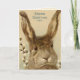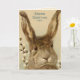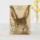 Illustration vintage d'un grand lapin brun avec les mots "voeux de Pâques" en bleu texte manuscrit en haut. Intérieur vierge.