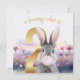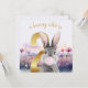 Carte Rabbit Deuxième anniversaire soufflant bulle rose
