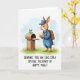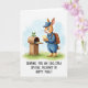 This card shows a cheerful, human-like rabbit dressed as a mail carrier, wearing a sky-blue uniform and matching cap, with a brown shoulder satchel hanging at its side 🐰. The rabbit’s bright blue eyes and soft smile suggest it’s delivering a note meant for someone special, like a quiet gesture of friendship or romance. Slightly to the left sits a rustic wooden mailbox, and the rabbit holds a pale yellow envelope close, as if pausing before slipping it inside. A few extra letters peek from the mailbox opening, hinting that messages are being exchanged back and forth. Behind them, a gentle cerulean sky with light, cloud-like brush marks keeps the scene airy, while emerald grass fills the lower foreground. Along the bottom edge, a short hand-lettered line of text is centered in a darker tone that stands out against the lighter ground, with a small 🌷 accent nearby. A tiny green sprout sprouts from the top of the mailbox lid.