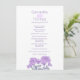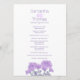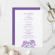 Chrysanthemum à deux faces fleur violet sur un arrière - plan blanc et un côté sur le programme de mariage arrière - plan violet. Plan floral plan botanique mariage fixe fixe. Modifiez ce programme de mariage avec votre nom, dates, libellé de la cérémonie, accompagnateurs de mariage et merci. Un programme simple mais élégant remplace simplement un exemple de texte par vos informations de mariage. Programme de cérémonie mariage violet moderne. Dessin et conception par Sarah Trett pour www.mylittleeden.com et www.mylittleedenweddings.com