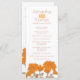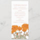 Chrysanthème à deux faces fleur d'orange sur un programme de mariage arrière - plan blanc. Plan floral plan botanique ensemble de papeterie mariage de dessin. Modifiez ce programme de mariage avec votre nom, dates, libellé de la cérémonie, accompagnateurs de mariage et merci. Un programme simple mais élégant remplace simplement un exemple de texte par vos informations de mariage. Programme de cérémonie de mariage de fleurs d'orange d'automne moderne. Plan et graphisme par Sarah Trett par www.sarahtrett.com pour www.mylittleeden.com