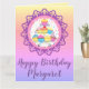 Colorée et amusante, cette carte d'anniversaire comporte des cupcakes et de la fleur de lis sur un arrière - plan pastel arc-en-ciel. Parfait pour les anniversaires de bureau ou de groupe. Beaucoup de place pour les signatures ! Changez simplement le nom à ce dont vous avez besoin.
