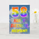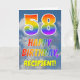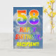 Cette carte de voeux amusante et colorée de 58ème anniversaire présente une représentation d'un ciel bleu nuageux, ainsi qu'un grand nombre de "58" et le message "HAPPY BANTHDAY", avec un spectre arc-en-ciel inspiré couleur motif dégradé, sur le devant. Le recto contient également le nom modifiable du destinataire de la carte. L'intérieur comporte un message de voeux d'anniversaire modifiable, ou peut-être pourrait-il être effacé et laissé vide si un message doit être écrit à la main à la place. Une carte d'anniversaire personnalisée comme celle-ci pourrait être une façon amusante d'envoyer des voeux d'anniversaire à quelqu'un qui célèbre son cinquante-huitième anniversaire. [~Z0000371]