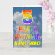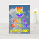 Cette carte de voeux amusante et colorée de 5ème anniversaire présente une représentation d'un ciel bleu avec des nuages, ainsi qu'un grand nombre de "5" et le message "HAPPY BANTHDAY," avec un spectre arc-en-ciel inspiré couleur motif dégradé, sur le devant. Le recto contient également le nom personnalisé du destinataire de la carte. L'intérieur comporte un message de voeux d'anniversaire modifiable, ou peut-être pourrait-il être effacé et laissé vide si un message doit être écrit à la main à la place. Une carte d'anniversaire personnalisée comme celle-ci pourrait être une façon amusante d'envoyer des voeux d'anniversaire à quelqu'un qui célèbre son cinquième anniversaire. [~Z0000371]