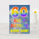 Cette carte de voeux de 60e anniversaire amusante et colorée présente une représentation d'un ciel bleu avec des nuages, ainsi qu'un grand nombre de "60" et le message "HAPPY BANTHDAY", avec un spectre arc-en-ciel inspiré couleur motif dégradé, sur le devant. Le devant contient également un nom de destinataire modifiable. L'intérieur comporte un message de voeux d'anniversaire personnalisable, ou peut-être pourrait-il être effacé et laissé vide si un message doit être écrit à la main à la place. Une carte d’anniversaire personnalisable comme celle-ci pourrait être une façon amusante d’envoyer un message pour célébrer le soixantième anniversaire de quelqu’un. [~Z0000371]