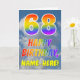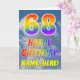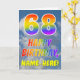 Cette carte de voeux de 68e anniversaire amusante et colorée présente une représentation d'un ciel bleu avec des nuages, ainsi qu'un grand nombre de "68" et le message "HAPPY BANTHDAY", avec un spectre arc-en-ciel inspiré colorant motif dégradé, sur le devant. Le devant contient également un nom de destinataire modifiable. L'intérieur comporte un message d'anniversaire personnalisé, ou pourrait être effacé et laissé vide si un message doit être écrit à la main à la place. Une carte d'anniversaire personnalisée comme celle-ci pourrait être une façon amusante d'envoyer des voeux d'anniversaire à quelqu'un qui célèbre son soixante-huitième anniversaire. [~Z0000371]