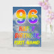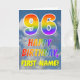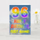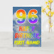 Cette carte de voeux de 96ème anniversaire amusante et colorée présente une représentation d'un ciel bleu avec des nuages, ainsi qu'un grand nombre de "96" et le message "HAPPY BANTHDAY", avec un spectre arc-en-ciel inspiré colorant motif dégradé, sur le devant. Le devant contient également un nom de destinataire customisé. L'intérieur comporte un message de voeux d'anniversaire modifiable, ou peut-être pourrait-il être effacé et laissé vide si un message doit être écrit à la main à la place. Une carte d’anniversaire personnalisable comme celle-ci pourrait être une façon amusante d’envoyer un message pour célébrer le quatre-vingt-seize anniversaire de quelqu’un. [~Z0000371]