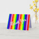 Bandes arc-en-ciel classiques, bandes verticales maigres dans les couleurs de rouge, orange, jaune, vert, bleu, indigo et violet, autrement connu sous le nom ROY G BIV, des premières lettres de chaque couleur, qui aide à se souvenir de l'ordre des couleurs dans le spectre. Le texte dit "Merci" en caractères de caractères jaunty avec des lettres blanches et des bords noirs pour un look surélevé. Le message intérieur dit : "...avec tout mon coeur" en noir sur un coeur rouge avec une bordure rose-violet. Si vous le souhaitez, vous pouvez personnaliser le texte avec votre propre message ou laisser les zones de texte en blanc pour supprimer le texte et simplement garder les images classiques.Ce design coloré se répète à l'intérieur, rendu pâle avec des transparences pour que vous puissiez écrire dessus. Couleurs vives arc-en-ciel, motif classique à rayures arc-en-ciel et un grand merci pour un ami, ma chérie, membre de la famille, toute personne qui a fait une différence dans votre vie. Ce design va égayer la journée de quelqu'un, idéal pour la fête du gay pride ou de la fierté, la conscience de la fierté ou à tout moment que vous voulez. Zesty vertical maigre rayures arc-en-ciel coloré design M Sylvia Chaume. Bonne bénédiction !