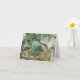 Share your appreciation with this blank greeting card featuring original photography of delicate raindrops on floral greenery. Text can be customized or removed.
