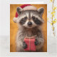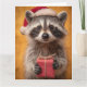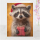 Carte Raton laveur adorable avec un chapeau de Père Noël