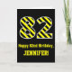 L'avant de cette carte de vœux d'anniversaire amusante et audacieuse présente un grand nombre "82" avec un motif à rayures noires et jaunes, ainsi que le message "Joyeux 82e Anniversaire" et un nom personnalisé. Le fond de la face avant est de couleur noire. L'intérieur comporte un message d'anniversaire personnalisé ou pourrait éventuellement être laissé vierge si un message doit être écrit à la main à la place. Une carte d'anniversaire personnalisable comme celle-ci pourrait être un moyen amusant d'envoyer un message pour célébrer le quatre-vingt-deuxième anniversaire de quelqu'un.
