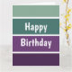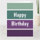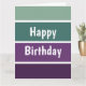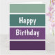 Un motif rayé horizontal vert et violet et le texte : Joyeux Anniversaire. Vous pouvez cliquer sur personnaliser et modifier le texte. Écrivez deux mots par ligne.