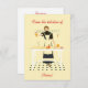 Illustration vintage d'une femme en tablier préparant des friandises dans sa cuisine noire et blanche à l'ancienne. Carte de recette. Retro. Noir, blanc, crème, rouge. Personnalisez.