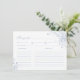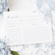 Créez des souvenirs chéris avec cette Carte de Recette Personnalisée Quelque chose de bleu Fête des mariées. Idéal pour capturer des recettes spéciales, il complète quelque chose de bleu douche de nuptiale idées avec élégance. Conçu pour s’intégrer harmonieusement dans un thème de douche nuptiale bleu, il est idéal pour ajouter du charme à vos idées de douche nuptiale bleue. Célébrez dans le style avec cet ajout essentiel à quelque chose de bleu nuptiale douche ou bleu nuptiale événement. Parfait pour un quelque chose de bleu avant de faire la fête ou un quelque chose de bleu avant de faire le thème de la douche!