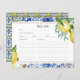 Cette élégante carte de recette de douche nuptiale pour la mariée à être présente un arrière - plan blanc avec carreaux bleu méditerranéen, fleurs et citrons/agrumes en aquarelle. Personnalisez-le selon vos besoins. Vous pouvez trouver des produits correspondants dans mon magasin.