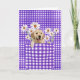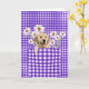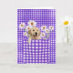 Mélange chien de repérateur blond en poche en vichy violet et blanc avec marguerites pour anniversaire général.