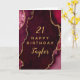 Cette carte d'anniversaire élégante et glamour peut être personnalisée avec un nom ou un titre comme maman, fille, petite-fille, nièce, ami etc. Le design est composé d'un arrière - plan en marbre rouge agate aux accents de parties scintillant en faux or. Le texte combine écriture manuscrite et polices sans serif modernes pour un look élégant et sophistiqué.