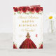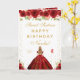 This elegant and glamorous sweet sixteen birthday card can be personalized with a name or title such as daughter, granddaughter, niece, friend etc. The design features a beautiful princess with blonde hair and fair skin in a red ball gown. The text combines handwritten script and modern sans serif fonts for a classy and sophisticated look. The floral arrangements, butterflies and gold confetti create the perfect blend of rustic and chic.