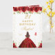 Cette carte d'anniversaire élégante et glamour peut être personnalisée avec un nom ou un titre comme fille, petite-fille, nièce, ami etc. Le design est composé d'une belle princesse aux cheveux brunes et à la peau claire en robe rouge. Le texte combine écriture manuscrite et polices sans serif modernes pour un look élégant et sophistiqué. Les compositions florales, les papillons et les confettis d'or créent un mélange parfait de rustique et de chic. Graphiques par www.etsy.com/uk/shop/SunflowerDayLove