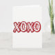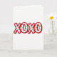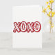 This greeting card features the large text “XOXO” centered on a wide white background. The letters are white inside with thick red outlines, making the message easy to spot right away. Inside each X and O, there’s a repeating pattern of many small red hearts, neatly spaced like a little heart collage. The red-and-white color pairing feels classic for Valentine’s Day and keeps the focus on hugs and kisses ❤️. The “XOXO” lettering looks like chunky, stylized print, and it sits right in the middle of the front. The design feels sweet and friendly, so it works for a partner, a close friend, or anyone you care about 🥰. It also has a slight textured look in the red areas, which makes it feel extra thoughtful to give.