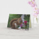Cette carte d'amitié présente un adorable écureuil rouge "à l'esprit de vous" car elle a un snack de graines de tournesol avec un arrière - plan de pétunias roses et blancs et une belle végétation. Une image plus petite du même écureuil est à l'intérieur. Le texte peut être customisé selon vos besoins.