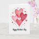 This greeting card features five heart-shaped balloons floating up from the lower part of the design. They’re painted in watercolor shades of red and pink, with soft edges and gentle brush marks that make them feel hand-painted. The hearts overlap a little, and each one looks slightly different in tone, from pale blush to deep red. Around the main group, small loose hearts in light pink and soft silver-gray are scattered across the white background like confetti. The overall setting is simple and airy, keeping the focus on romance and sweet affection ❤️💌. Near the bottom, the words “Happy Valentine’s Day” appear in a flowing script style, written in a dark gray tone that stands out without feeling heavy. It’s an easy, heartfelt design that would pair nicely with a kind note and maybe a little treat 🍫.