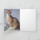 Celebrate any occasion with the quiet grace of this Abyssinian cat. Set against a soft, muted background and surrounded by delicate blooms, this elegant card conveys sophistication and charm.