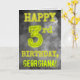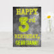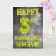 Le devant de cette conception de carte de vœux d'anniversaire éditable au thème effrayant comporte le message "JOYEUX 3e ANNIVERSAIRE" avec des personnages ayant une apparence d'aura lumineuse inquiétante, sur un motif de fond inspiré d'un brouillard gris mystérieux et nuageux. Le devant comporte également un nom de destinataire personnalisé. L'intérieur comporte un message de vœux d'anniversaire personnalisé. Une carte de vœux d'anniversaire éditable comme celle-ci pourrait être offerte pour commémorer le troisième anniversaire de quelqu'un. [~Z0000364]
