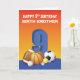 Bounce autour de boules de salutation d'anniversaire amusantes pour un garçon spécial qui célèbre un 9e anniversaire. La seule façon de le faire est de lui donner cette carte. Cela vient aussi avec une relation personnalisée sur le front.