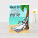 This card features a white-furred rabbit lounging at the base of a leafy palm tree 🐰. The bunny’s long ears show a soft blue inner tint, and dark sunglasses sit above a wide grin that suggests it’s sharing a private joke with someone just off to the side. In the background, an aquamarine ocean stretches toward the horizon, meeting a warm golden beach under bright, even cartoon-style lighting. A striped towel in pink and blue lies beneath the relaxed figure, adding a cozy, vacation feel that reads like an easy day with a close friend. One paw holds a bright green drink with a straw, as if it’s been offered in a small, affectionate toast 🐇. Across the upper half, a large all-caps question is printed in dark lettering, centered and spaced wide against the sky for easy reading. The palm fronds arc overhead in rich greens, and the shoreline curves gently behind the reclining bunny.