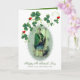 Personnalisez cette jolie carte religieuse vintage avec une belle image de saint Patrick, l'évêque d'Irlande, avec des trèfles, des cœurs rouges et une bénédiction irlandaise à l'intérieur. Un trèfle vert apparaît au-dessus du verset.