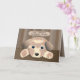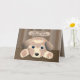 Carte de BON RÉTABLISSEMENT avec un petit chien triste parce que quelqu'un ne se sent pas bien. Des larmes sur ses joues.