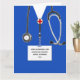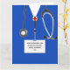 Carte de remise de diplôme de l'école d'infirmières créative avec des tenues bleues d'hôpital. Pour personnaliser, modifiez le texte pour ajouter le nom de l'infirmière, l'université et l'année.