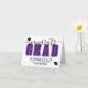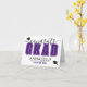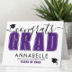 Félicitations diplômé, carte de fin d'études élégante et audacieuse, violette, noire et blanche.