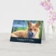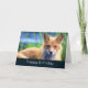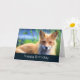 Une carte d'anniversaire avec une image colorée de faune d'un renard rouge couché dans l'herbe verte. Cette créature mignonne a une fourrure douce et des yeux doux. L'image a une atmosphère rêveuse et magique.