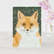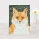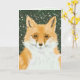 Dessin ou peinture réaliste numérique d'un petit renard roux mignon, sur un fond de flocons de neige tombant dans la forêt marron et verte. Ce design de saison hivernale serait parfait pour une carte de vacances de Noël. Ce design a un fond fixe, mais vous pouvez changer la taille et la position de l'image et ajouter votre propre texte. À l'intérieur de cette carte se trouve une petite image transparente du petit renard. Vous pouvez changer ou supprimer cette image et changer le fond.