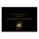 Une texture de soie dorée luxueuse et scintillante drapée à travers deux anneaux de mariage sur un fond noir dramatique avec une bande de style Déco pour donner au design un look chic et glamour à personnaliser pour chaque invité sur la table