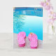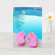 Tongs roses et blancs avec marguerite jaune près de la piscine pour la retraite félicitations