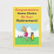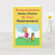 Une carte de retraite à thème de golf pour les femmes que vous pouvez personnaliser avec le nom du bénéficiaire. Ajoutez votre propre message à l'intérieur. Carte de retraite pour une femme qui aime le golf, ou une femme golfeuse. Drôle Drôle Dessin d'une golfeuse dans une torsion.