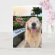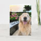 Montrez à quelqu'un votre appréciation avec cette carte mignonne ! Design présente une photo d'un chien de repérage doré souriant à l'extérieur devant des fleurs colorées, au coucher du soleil. Le texte personnalisable dit : "Merci, votre réflexion est appréciée."