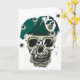 Un rétro motif militaire de crâne et de béret sur un camp endommagé en métal verdissent la surface avec des trous de balle dans lui.