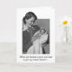 Une illustration vintage tirée d'une publicité montre une nouvelle mère rétro du milieu du 20e siècle tenant et souriant son nouveau bébé. Elle brille avec fierté lorsqu'elle tient le bébé pour que d'autres puissent l'admirer. L'avant de la carte dit : "Quand vous devenez maman, vous devez renoncer à certains luxes..." et à l'intérieur de la carte, "... comme le sommeil, la nourriture et les douches."