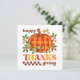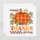 Carte de voeux de style super rétro. Elégante typographie rétro "Bon thanksgiving", avec des fleurs marguerites mignonnes, des étoiles et un citrouille à damiers. La carte comprend un merveilleux message de bienvenue à l'arrière qui peut être personnalisé.