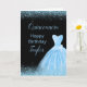 Une belle robe d'aquarelle bleu clair sur un arrière - plan noir avec fausse parties scintillant en haut et en bas de la carte. Tout le texte peut être personnalisé selon vos besoins.