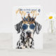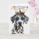 Carte d'anniversaire amusante pour l'amoureux des chiens et l'amant dalmate, ce mignon chien de cheminée est régal dans une couronne marine et couleur or et lunettes de soleil cool.