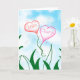 Celebrate the eternal love between you and your significant other with this charming, romantic Valentine's Day custom couples names greeting card for him or her. This unique, colorful card has a background of a pretty light blue sky with fluffy white clouds covering both the front and back, and an eye-catching image (hand drawn by yours truly) on the front: tall artsy green grass blades and two large entangled floating heart-shaped balloons (one is outlined in red, the other pink) for you to personalize with names or initials by clicking on "Personalize this template"; the text font, size, color, etc., can then be changed by clicking on "Edit using Design Tool." Red, pink, and green droplets surround the balloons, which make this whimsical design pop. The inside verse says, "Entangled hearts. Endless love. Happy Valentine's Day to us." *Perfect for making your honey feel loved, cherished, and lucky to be entangled with you! : )