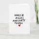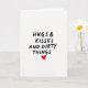 This card immediately catches the eye with a simple but direct message written in bold black handwriting on a clean white background. The words "HUGS & KISSES AND DIRTY THINGS" take center stage, looking like they were scribbled with a thick marker in a fun, carefree way. Below this phrase, a bright red heart adds a pop of color, standing out in a sea of black and white. The overall feeling of the card is sweet and intimate, mixing affection with a hint of playfulness. The design keeps things minimal, letting the words speak for themselves and balancing a loving tone with a bit of cheeky charm. The hand-drawn look of the letters gives the message a genuine and daring feel, creating a story of sincere and bold expression. This card is perfect for sharing some love and laughter on Valentine's Day ❤️💌🍫.